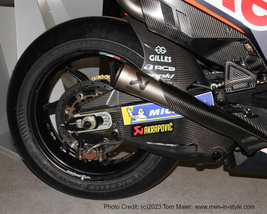 Die Reifen von Hersteller Michelin werden vom Reifen-Guide ständig konditioniert - ständig müssen die richtigen Reifen zum richtigen Zeitpunkt bereit zum Einsatz sein: Reifen-Temperatur, Luftfeuchtigkeit und Reifendruck müssen aufs 1/100 genau passen. Ein visierter Reifen-Einsatz ist entscheidend für Startposition und Grip & Speed im Rennen, betont Wolfgang Felber. Die smarte Kombination der verschiedenen Reifen (angefahren oder neu) und Mischungen (soft / medium / nur für HR: hard) auf Vorder- und Hinterrad, unterschiedlich für Training, Qualifying und Rennen erfordert Erfahrung und Fingerspitzengefühl für die Anforderungen der jeweiligen Rennstrecke. Dazu kommt, die Regeln beschränken das Reifenkontingent auf 12 Stück je GrandPrix-Wochenende: Und 1 Reifen hat eine Lebensdauer von ca. 25 Runden…